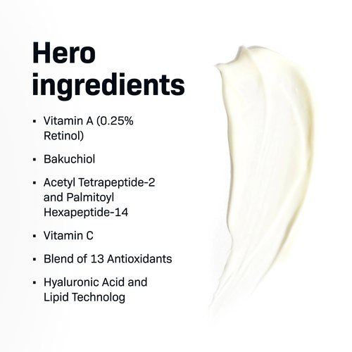 Details: Rejuvenate skin overnight with our groundbreaking, age defying night cream, featuring 0.25% retinol and a blend of brightening and anti wrinkle ingredients that visibly address the signs of aging for a more youthful appearance.