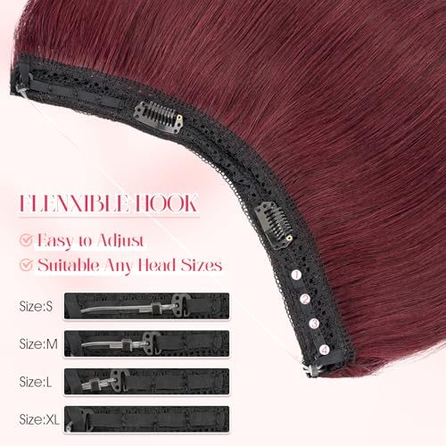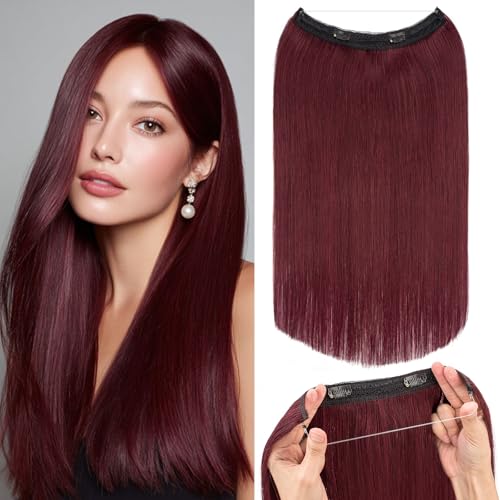 Rich Choices Halo Hair Extensions Real Human Hair Invisible Wire In Hair Extensions Remy Human Hair Clip in Human Hairpiece One Piece 18 Inch #99J Burgundy Red