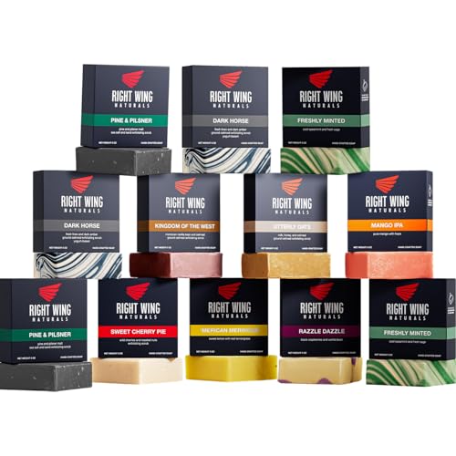 - 12-PACK GIFT FOR THE MAN WHO MATTERS ? Get 12 full-sized, 5 oz bars of premium natural soap in one convenient package! Perfect for stocking up or gifting, whether it¡¯s a special occasion or just because. Right Wing Naturals soap is sure to please even the pickiest of men!