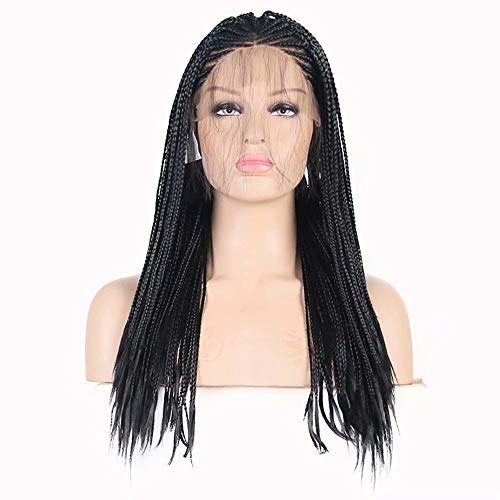 RONGDUOYI RDY 18 Inches Black Braided Lace Front Wigs for Black Women Natural Hairline Synthetic Wig Pre Plucked Glueless Braids Wig (180% Density,Style2)