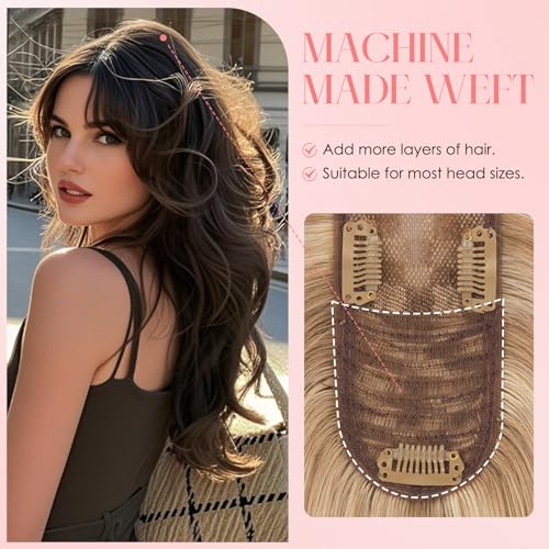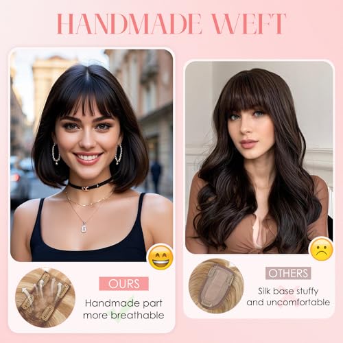 - Natural Human Hair Topper with Bangs: The hair topper for women comes with 4.5-5.5 inch air bangs that add a youthful and stylish touch.Made from 100% real human hair, it is soft, smooth, and can be heat-styled to match your desired look?whether straight, wavy, or curly.Ideal for weddings, date nights, or daily wear