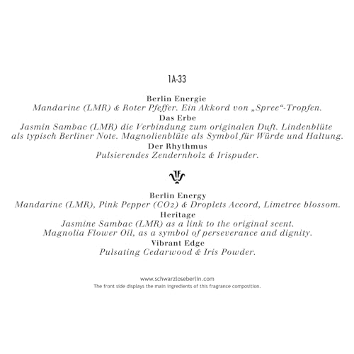 - THE ENTIRE SPIRIT OF BERLIN. 1A-33 is the first new-interpretation and is one of the most successful fragrances of J.F. Schwarzlose Berlin. With this flowery-fresh fragrance, there is nothing that stands in the way of continuing beautiful traditions.