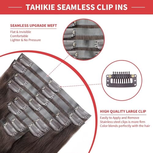 Seamless Clip in Hair Extensions Human Hair 120g 8pcs Straight Dark Brown Clip in Hair Extensions for Women 100% Remy Human Hair Extensions(20inch,#2 Dark Brown)