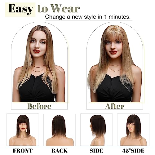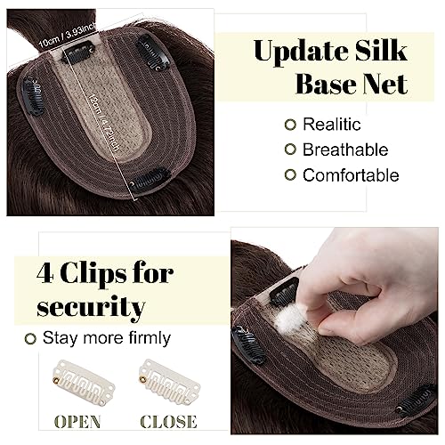 SEGO Hair Toppers for Women With Bangs Real Human Hair, 130% Density 10 * 12CM Silk Base Clip in Top Wiglet Hairpieces for Thinning Hair-10 Inch 02 Dark Brown