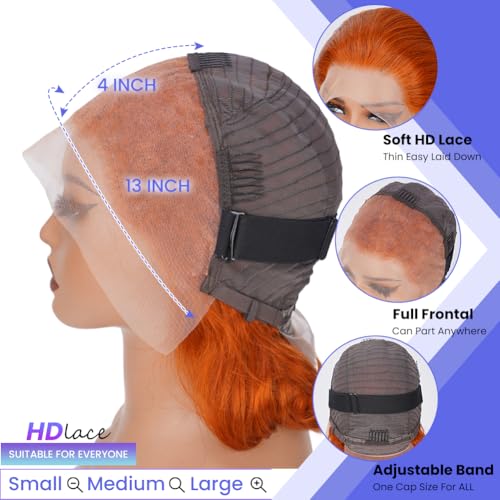 Short Bob Wig 350 Ginger Orange 16 Inch 180% Density Human Hair 13x4 HD Transparent Lace Front Wig with Baby Hair for Women