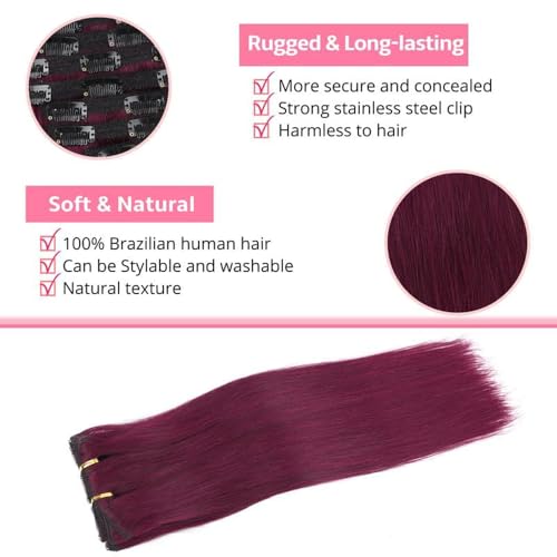 - Burgundy Clip in Hair Extensions Advantage:Easy Application and Removal.Instantly Add Volume And Length in Just 5 Minutes.Enjoy Salon Quality Hair Without Visiting The Salon.Transform Your Look Effortlessly.