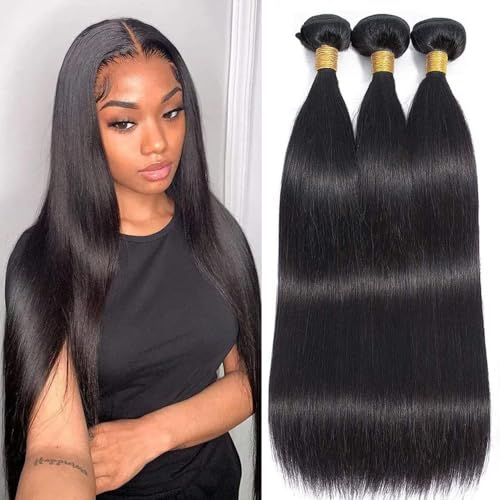 Straight Bundles Human Hair 22 24 26 Inch 100% Unprocessed Brazilian Virgin Hair Straight Weave Bundle Human Hair Bundles Real Natural Black Human Hair Extensions