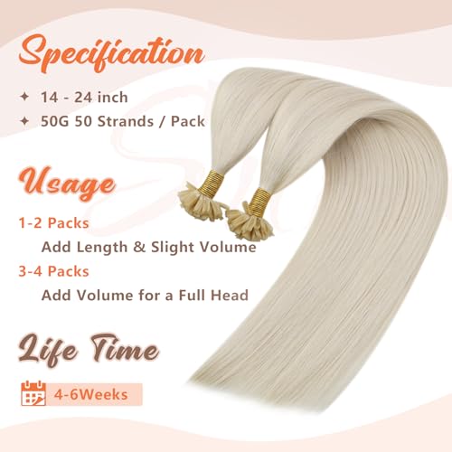 Sunny Hair Long U Tip Hair Extensions Human Hair White Color K Tip Hair Extensions Real Human Hair Blonde Keratin Bond Extensions Human Hair 24inch 50g