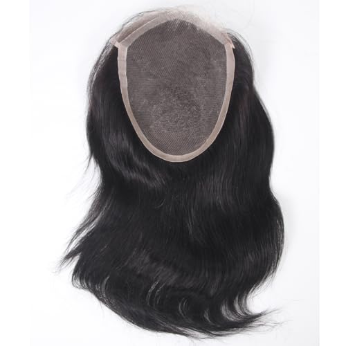 Swiss Lace Front with PU Men's Toupee Man Hairpieces Human Hair Replacement System for Men 4.5x7inch 10inches Long Hair 1B Black Color