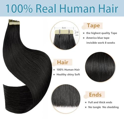 Tape in Hair Extensions Human Hair 24Inch Natural Black Color 20Pcs 50G/Pack Straight Seamless Weft Skin Invisible Thick 100% Real Black Human Hair Tape In Extensions