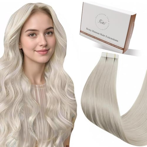 Tape in Hair Extensions Human Hair Blonde Tape ins Extension Invisible Platinum Blonde 22 Inch 20pcs 50g