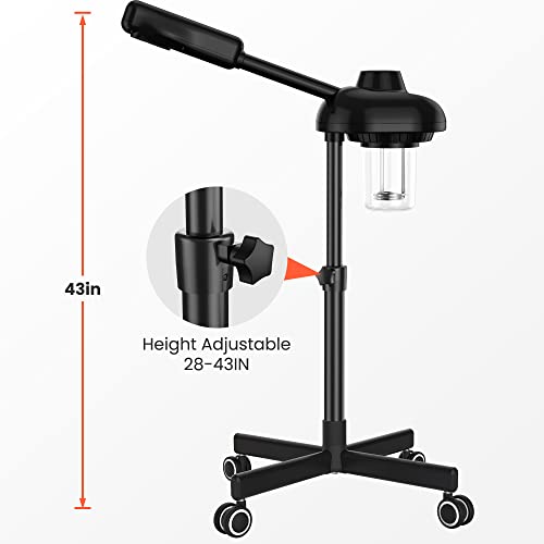TASALON Steamer on Wheels for Professional Skin Rejuvenation, Facial Steamer Kit for Home, Spa, Clinic - Warm Mist, Ozone Face Humidifier - Pore Opener and Cleanser-Black