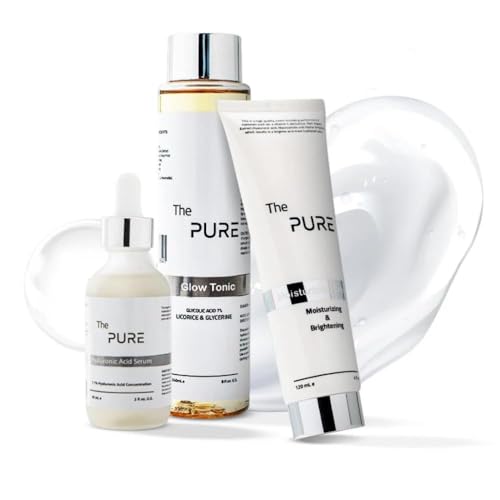 The Pure Skincare Set, Moisturizing Cream, Glow Tonic and Hyaluronic Acid Serum, Hydrating & Brightening Face Care Kit for Anti Aging, Wrinkles, Dark Spots & Radiant Skin