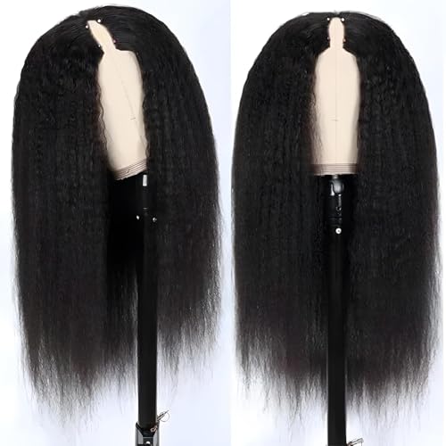 V Part Wig Human Hair Kinky Straight 20 Inch Vpart Human Hair Wig Upgrade U Part Wig Yaki Straight Clip in Half Wigs for Black Women Glueless No Leave Out 180% Density Natural Color
