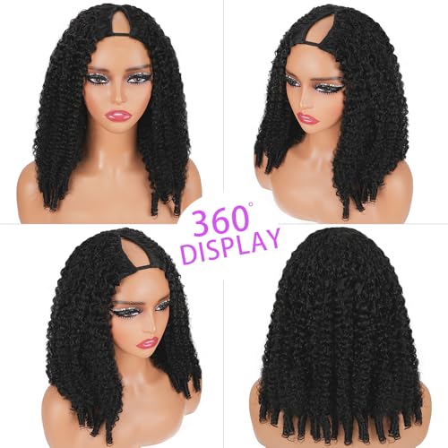 V Part Wigs Human Hair Burmese Curly Glueless Wig Human Hair 200% Density Wet And Wavy Water Wave V Part Wig With Drawstring And Spiral End Beginner Friendly Blend Curly Natural Black