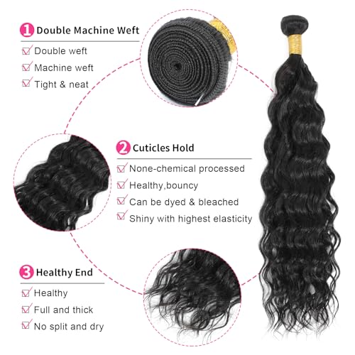 Water Wave Bundles Human Hair 20 22 24 Inch Deep Curly Human Hair Bundles 100% Unprocessed Brazilian Natural Wave Quick Weave Hair for Women Natural Black