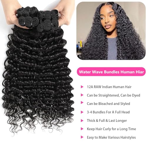 Water Wave Bundles Human Hair Soft Brazilian Virgin Human Hair 100% Unprocessed Wet and Wavy Curly Bundles Natural Black Color Can Be Dyed Total 300g 16 18 20 Inch
