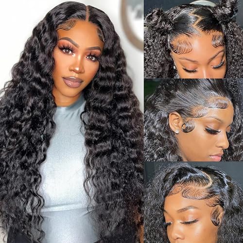 - ¡¼Water Wave Frontal Wig Human Hair Quality¡½: 200% density 13x6 water wave lace front wigs human hair pre plucked with natural hairline. True to length & weight, no smell, no split ends, no shedding, tangle free. curly wave human hair wig can be straightened, curled, bleached, dyed, permed and styled as like your own hair.