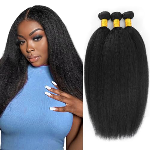 - Blends Well With Your Own Hair: Lightweight and comfortable, kinkystraight human hair bundles easy to comb and shape, the yaki straight bundles texture is nice and soft, natural and slightly wavy, it resembles natural blown-out hair, and is comfortable to wear. The kinky straight bundles texture mimics natural hair, providing a seamless blend that looks incredibly natural.