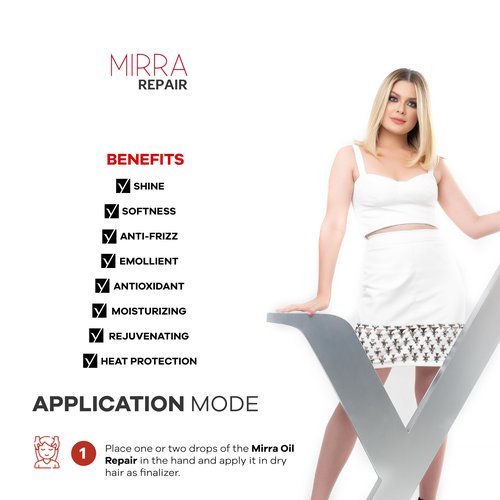 - Stronger Hair; more resistant to chemical process; The Myrrh is a Millenary Essential Oil for dream like hair; No more dry or frizzy hair; Mirra Oil Repair is a powerful restore resin that provides an intensive hair repair treatment; you can use it on your masks and conditioners, providing Essential Nutrients and enjoying moisture and shiny hair