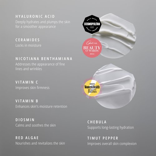 - Radiance & Renewal: EGF, Vitamin C, and Chebula Seed Extract improve elasticity, boost luminosity, and calm sensitivity.