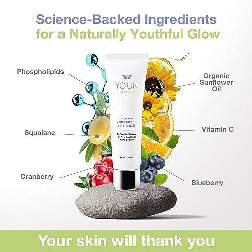 - POWERFUL FUSION OF SCIENCE AND NATURE ? YOUN Beauty is committed to giving you the best of both worlds. The YOUN Beauty Calming Antioxidant Moisturizer combines the highest quality, natural ingredients (such as Sunflower Oil, Grapeseed Oil, and Shea Butter) with scientifically-proven components (such as Lactic Acid, Vitamin C, Coenzyme Q10, Peptides, and Squalene)