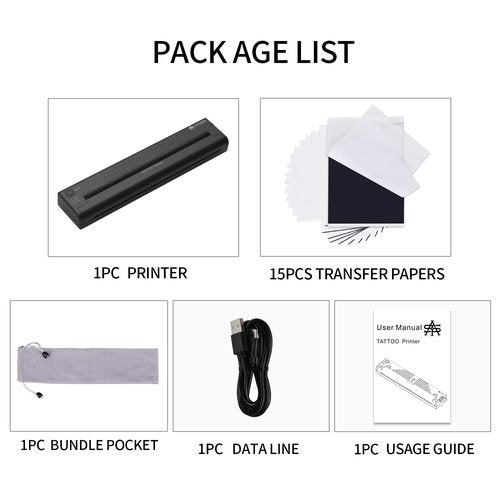 - Versatile Tattoo Transfer Machine with Bonus Transfer Paper: Our machine is designed to work with standard A4 tattoo transfer paper, offering an effective printing width of 216mm. It has a high printing density of 8 dots/mm (203dpi), 1728 dots/line, and a fast printing speed of up to 15mm/s. This makes it perfect for both temporary and permanent tattoos. Additionally, we include 15 sheets of tattoo transfer paper as a bonus to help you get started.