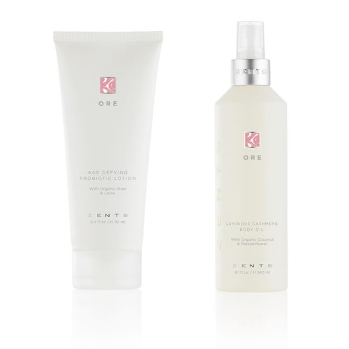 Zents Age-Defying Probiotic Lotion & Cashmere Body Oil Set (Ore Fragrance) | Moisturizing Lotion with Hyaluronic Acid & Organic Shea Butter | With Vitamin E & Coconut Oil | 6.4 fl oz & 8 fl oz